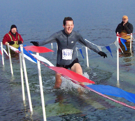 Since we don’t stay up late or drink heavily, Liz and I opted to celebrate the New Year by winning the “Double Dip” team division of the 2008 Resolution Run 5K on January 1st. We received a nice trophy topped with a male and a female running in perfect synchrony.