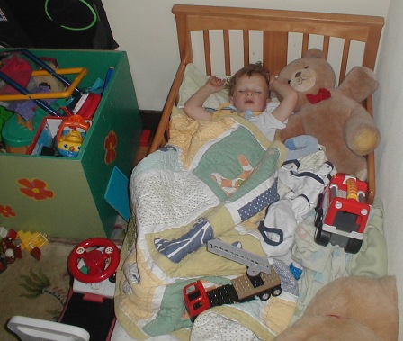 Then again, one might also notice the two teddy bears and five blankets and conclude simply that the kid is a hoarder.
