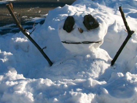 We’re stuck in New York City as a result of the snowstorm that caused the cancellation of our flight. Today we walked through Central Park and saw, among other things, a nicely made snowman.