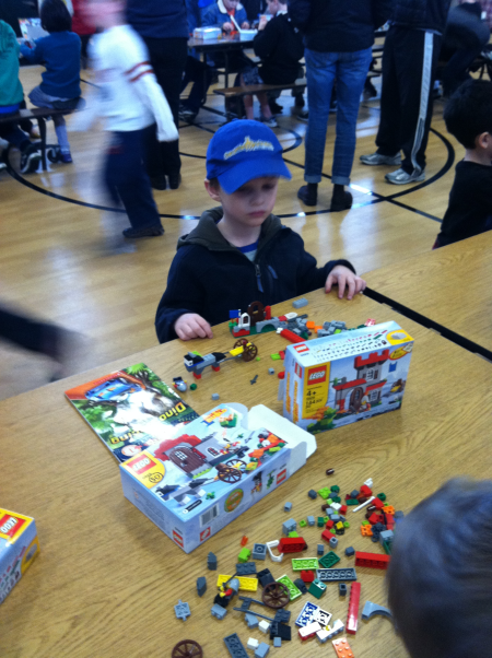 Yesterday Phil participated in a “Lego Build” competition at his school. Each kid was given the same Lego set (product number 5929, with parts for a medieval castle scene) and told to be creative rather than following the set’s instructions. Despite being at the young end of the 5- to 8-year-old age group, Phil won this division! The judges praised his “innovative, almost transgressive transmutation of the iconic Lego medium.”