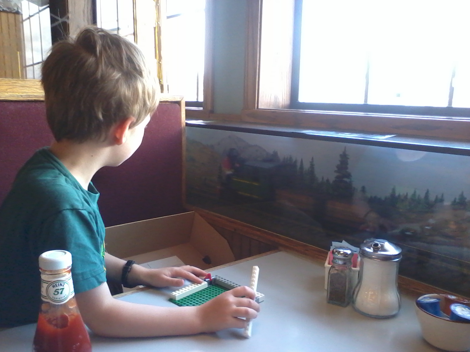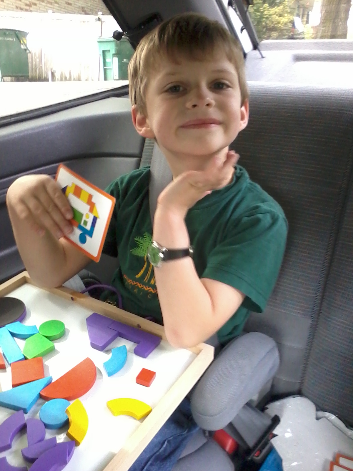 Phil did well during the 9 or so hours of driving to Boise, only complaining of boredom a couple of times. One of our monotony-combating activities was to make up stories about a police dog named Lucky. (One or more of those will be posted separately.) He also had some fun making pictures with a set of magnetized shapes called Imaginets.