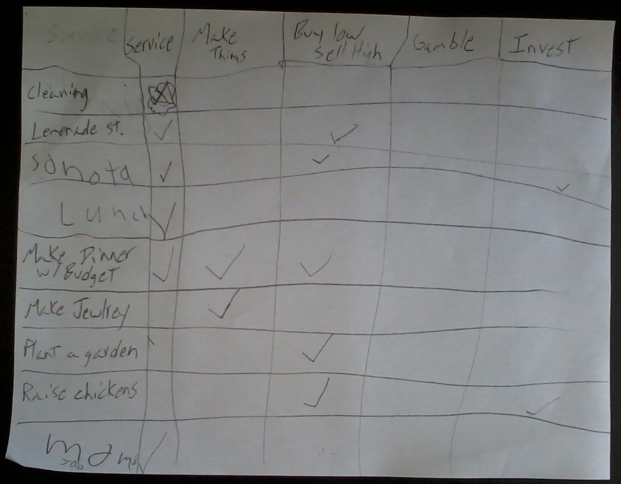 [The Huamper children don’t simply receive an allowance; they are instructed in the five basic ways to earn money: service, make things, buy low/sell high, gamble, and invest.]