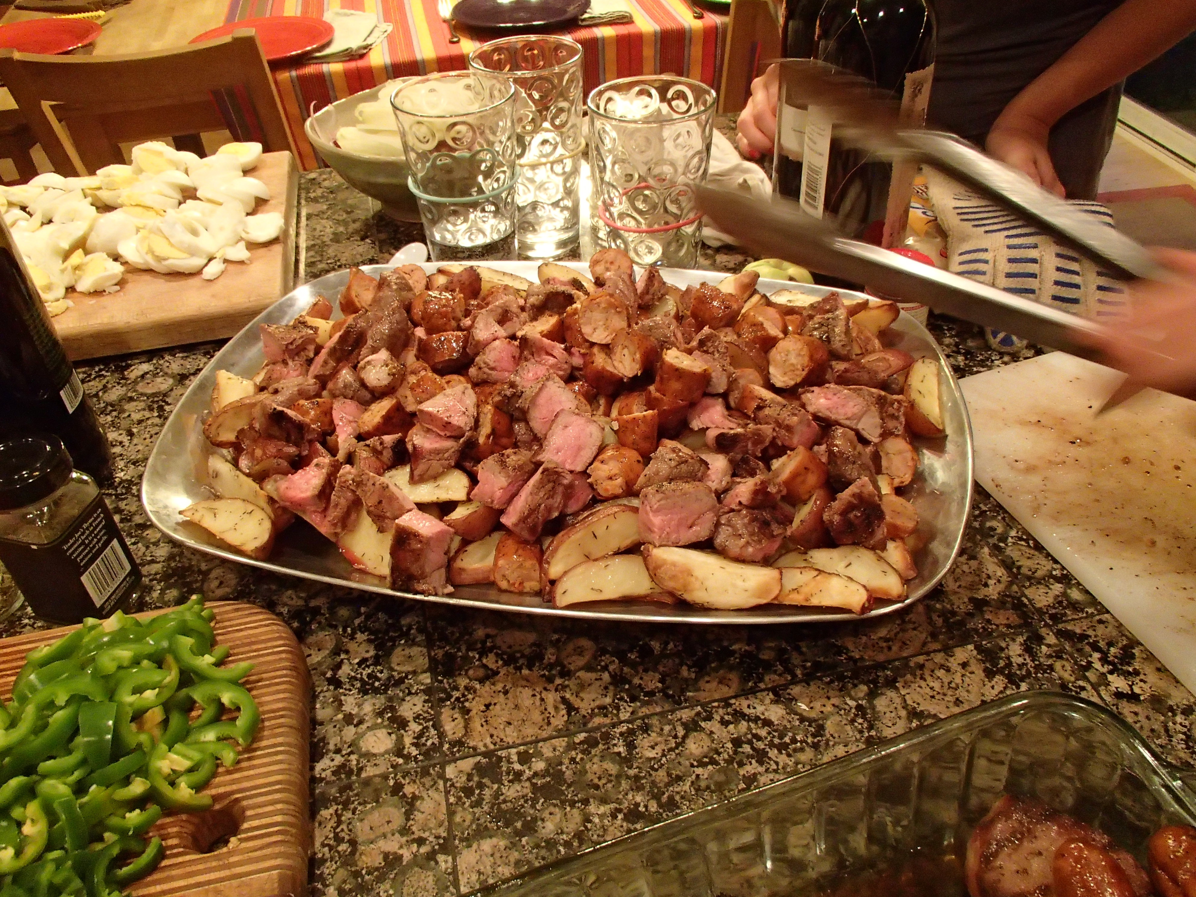 Bend: the Bolivian dish “pique a lo macho” (in progress), a favorite of Leila’s Peace Corps friends.