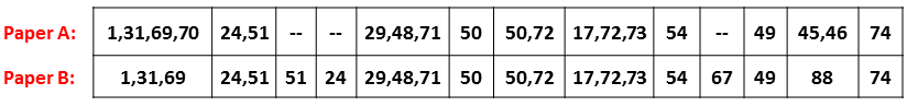 I recently reviewed a manuscript bearing a suspicious resemblance to an already-published paper. The exact wording of the previous paper had not been copied; however, in a couple of sections, the new manuscript made a series of points in the same order as the previous paper, using a very similar sequence of references. The sequence of greatest overlap is shown below (with references from Paper B renumbered according to the bibliography of Paper A).