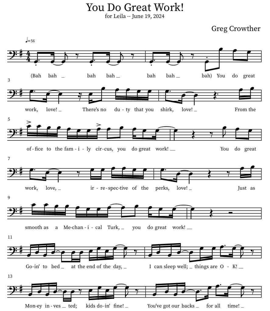 I’ve written quite a few songs, poems, etc. for family members and friends. The general intent of these pieces is to convey love, appreciation, gratitude, and so forth, but the words don’t always make this clear, and the recipient may not recognize the intent.